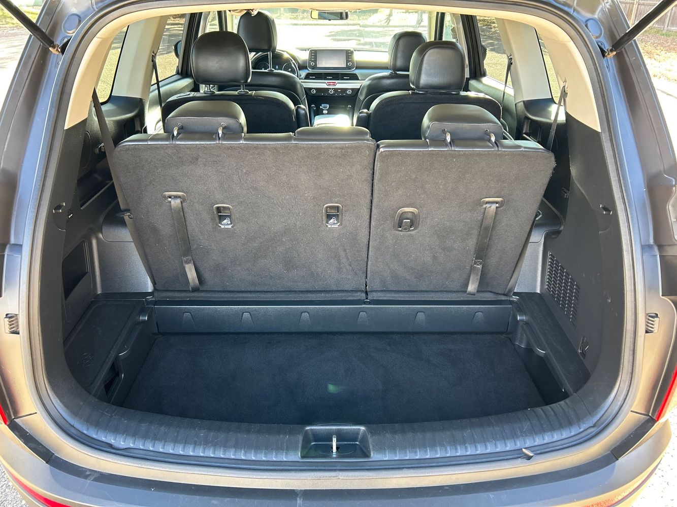 Third-row seatback upholstery: Carpet third-row seatback upholstery